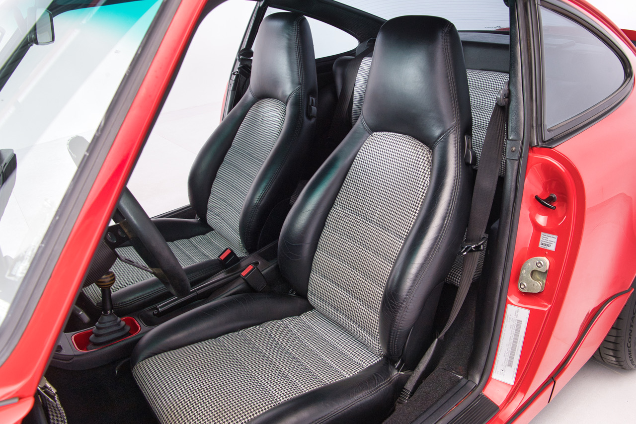 CLB Sportscars is thrilled to offer this 1991 Porsche 911 Carrera 4 finished in Guards Red over Black Interior! Delivered new through Porsche Grand Rapids on March 28th, 1991, this example left the factory with the Leather Package, Sliding Sunroof, Headlight Washers, and more. Aquired in 2017 by a local enthusiast, the car has undergone a cosmetic, mechanical and aesthetic transformation in the form of H&R Coilovers, Rotiform STR 3-piece Wheels, Custom Houndstooth Interior, and more. Over $60k of servicing has been invested in the last 9 years, including an engine-out reseal in 2022 by local marque experts Modern Aircooled. With records dating back to 2001 and possessing original documentation such as the original signed warranty booklet, this 964 represents a tremendous opportunity in today’s marketplace!