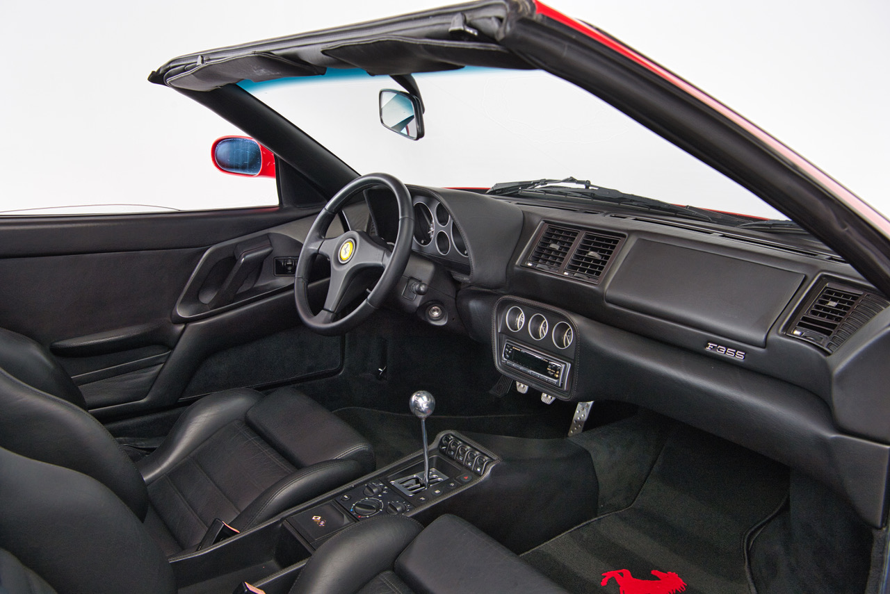 CLB Sportscars is proud to offer this 1995 Ferrari F355 GTS finished in Rosso Corsa over Nero Interior. The rarest of the 355 Variants, the GTS features a removable targa top and provides a visceral open top motoring experience. Delivered new 9/22/95 to it’s first Swiss owner and imported to the United States in 2022, this example arrives with just under 41,000 miles (65000 KM). This GTS benefits from an extensive service history that is noted in it’s stamped warranty book, including an engine-out service completed June 2025 by Marque experts HS Motorsport in Houston Texas.