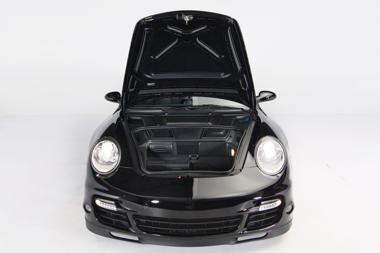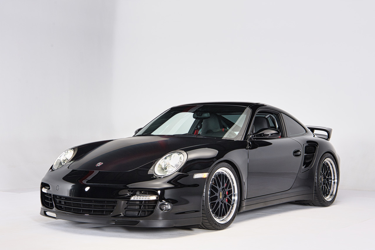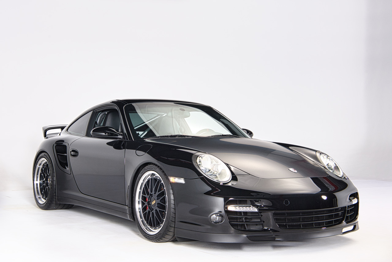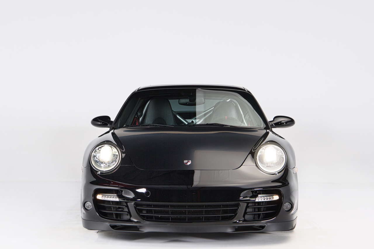 CLB Sportscars is thrilled to offer this 2007 Porsche 911 Turbo finished in Black over Black Interior. This gorgeous 6-speed 997.1 Turbo arrives with just 25,767 miles from new and features an array of tasteful upgrades that enhance the experience that only a 911 Turbo can deliver. A GMG 3.5 inch Exhaust with slash cut tips enhances the 3.6L Mezger’s soundtrack and is paired with a ByDesign Stage 2 Tune. The car sits on Bilstein Coilovers front and rear and wears a set of fresh Michelin Pilot 4S tires. Inside, a 991.2 GT3 Steering Wheel and PCCM Head Unit help modernize the full black leather interior, and a GMG roll cage sits in back. This is a perfectly dialed 997.1 Turbo and benefits from long term collectibility with its factory 6-speed transmission.