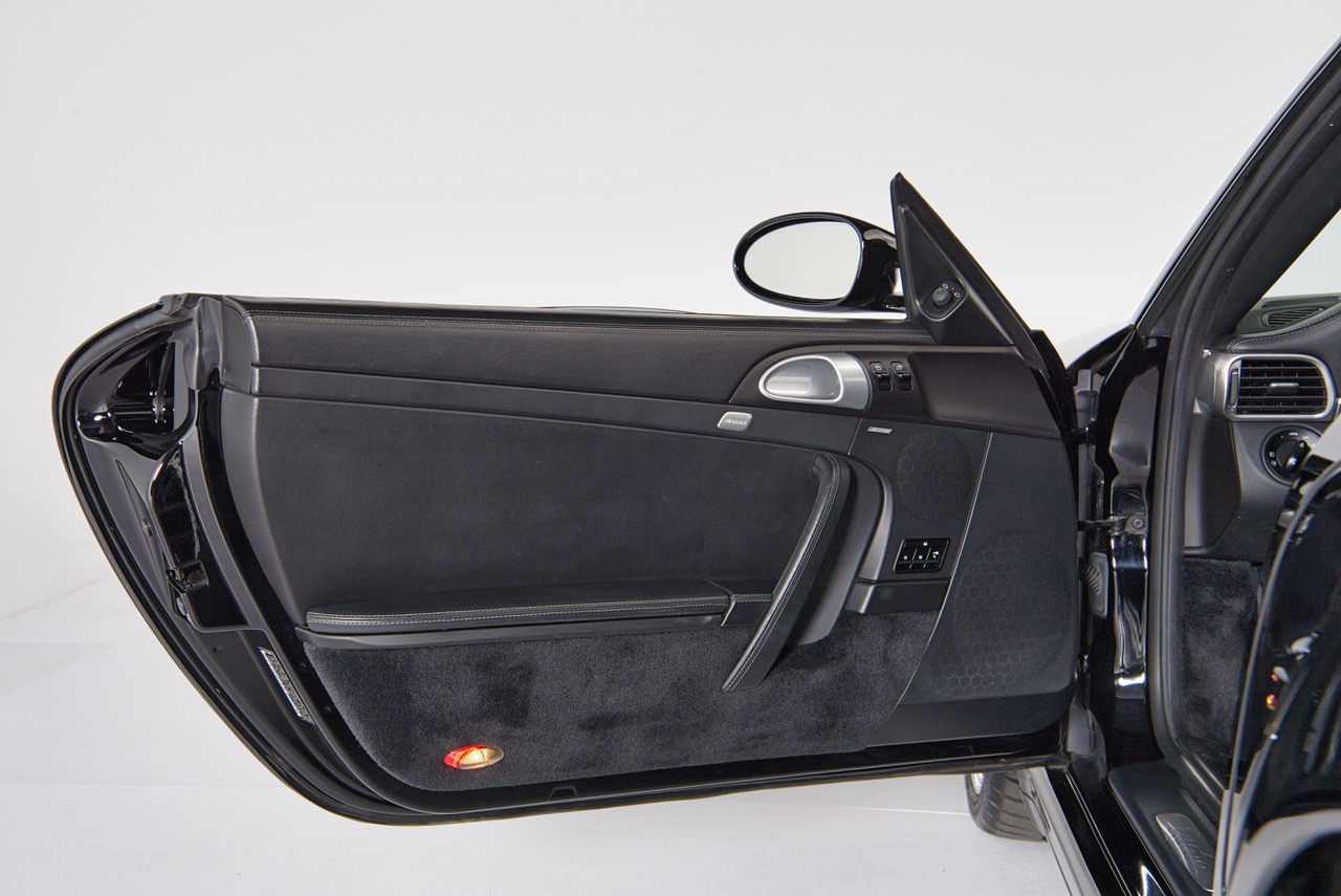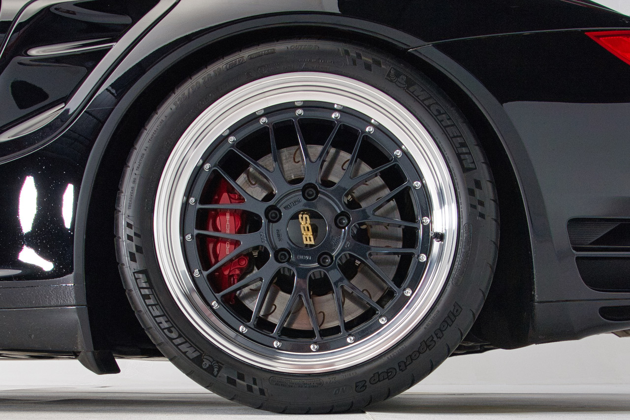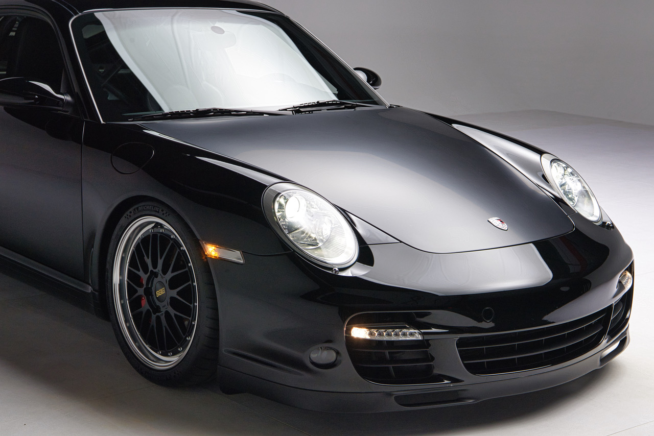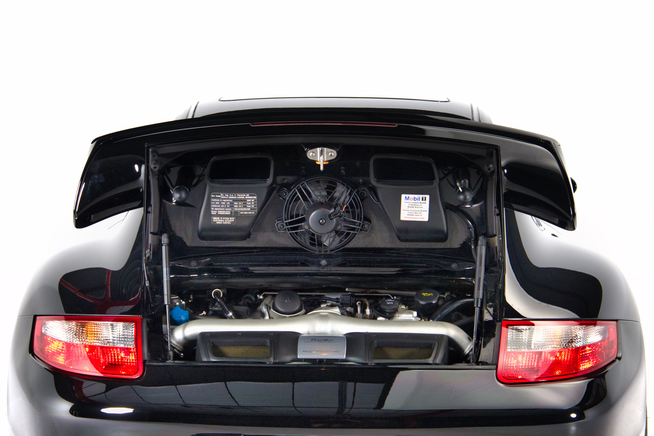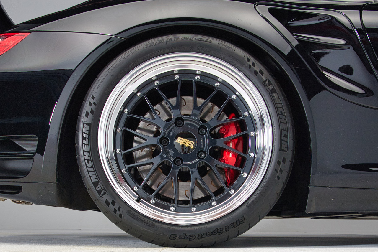CLB Sportscars is thrilled to offer this 2007 Porsche 911 Turbo finished in Black over Black Interior. This gorgeous 6-speed 997.1 Turbo arrives with just 25,767 miles from new and features an array of tasteful upgrades that enhance the experience that only a 911 Turbo can deliver. A GMG 3.5 inch Exhaust with slash cut tips enhances the 3.6L Mezger’s soundtrack and is paired with a ByDesign Stage 2 Tune. The car sits on Bilstein Coilovers front and rear and wears a set of fresh Michelin Pilot 4S tires. Inside, a 991.2 GT3 Steering Wheel and PCCM Head Unit help modernize the full black leather interior, and a GMG roll cage sits in back. This is a perfectly dialed 997.1 Turbo and benefits from long term collectibility with its factory 6-speed transmission.