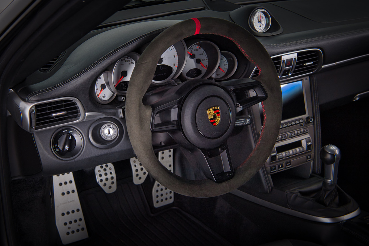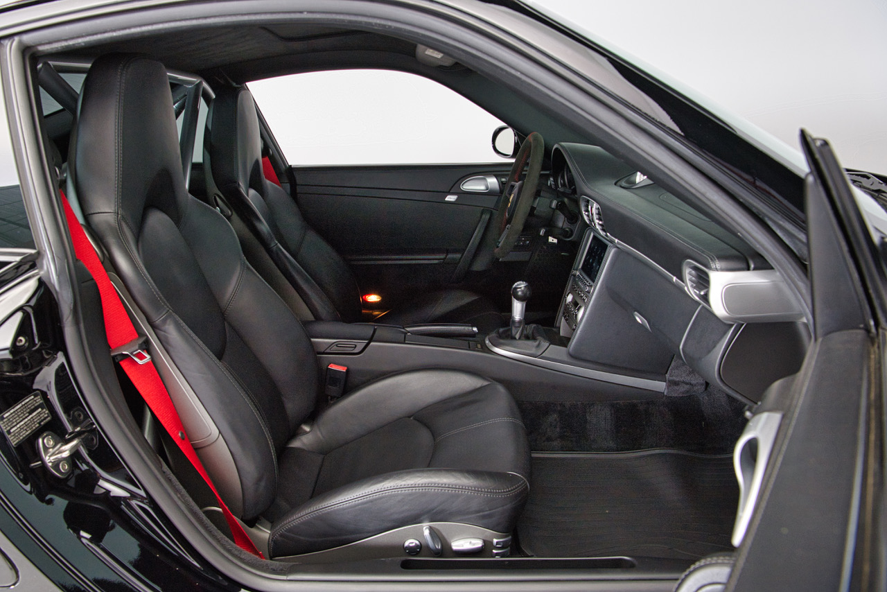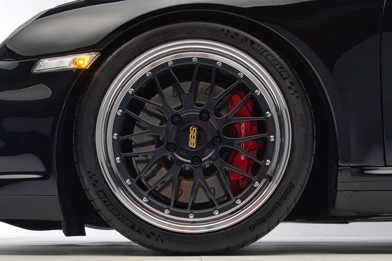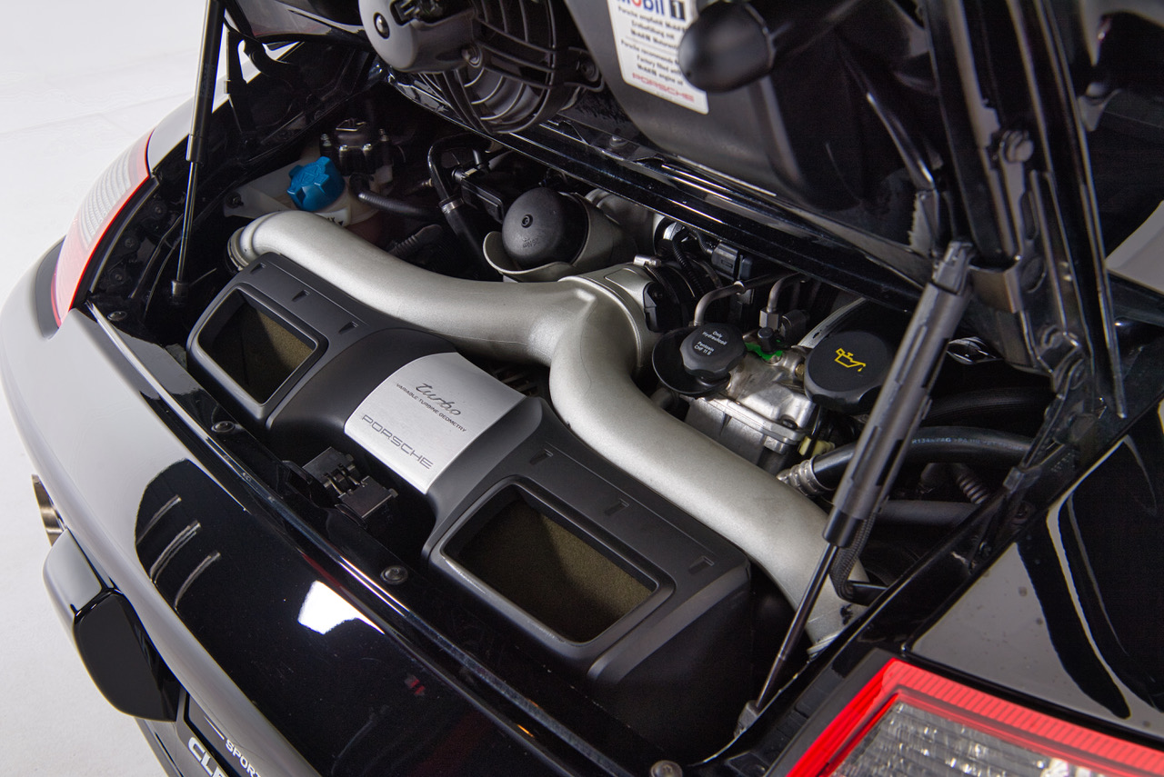 CLB Sportscars is thrilled to offer this 2007 Porsche 911 Turbo finished in Black over Black Interior. This gorgeous 6-speed 997.1 Turbo arrives with just 25,767 miles from new and features an array of tasteful upgrades that enhance the experience that only a 911 Turbo can deliver. A GMG 3.5 inch Exhaust with slash cut tips enhances the 3.6L Mezger’s soundtrack and is paired with a ByDesign Stage 2 Tune. The car sits on Bilstein Coilovers front and rear and wears a set of fresh Michelin Pilot 4S tires. Inside, a 991.2 GT3 Steering Wheel and PCCM Head Unit help modernize the full black leather interior, and a GMG roll cage sits in back. This is a perfectly dialed 997.1 Turbo and benefits from long term collectibility with its factory 6-speed transmission.