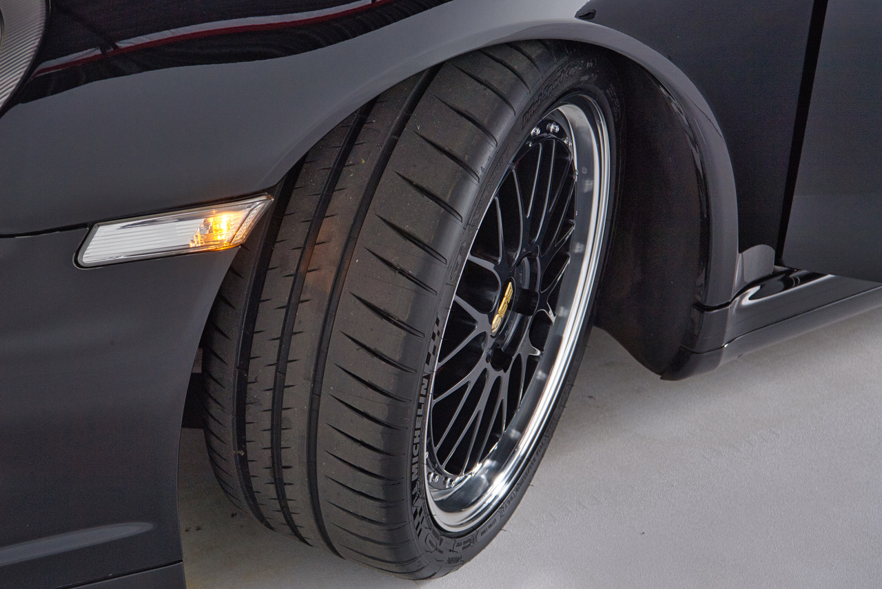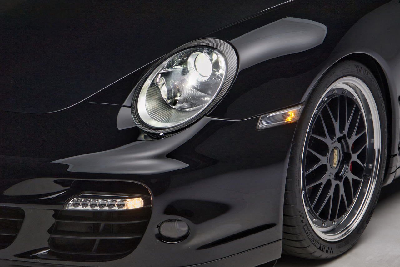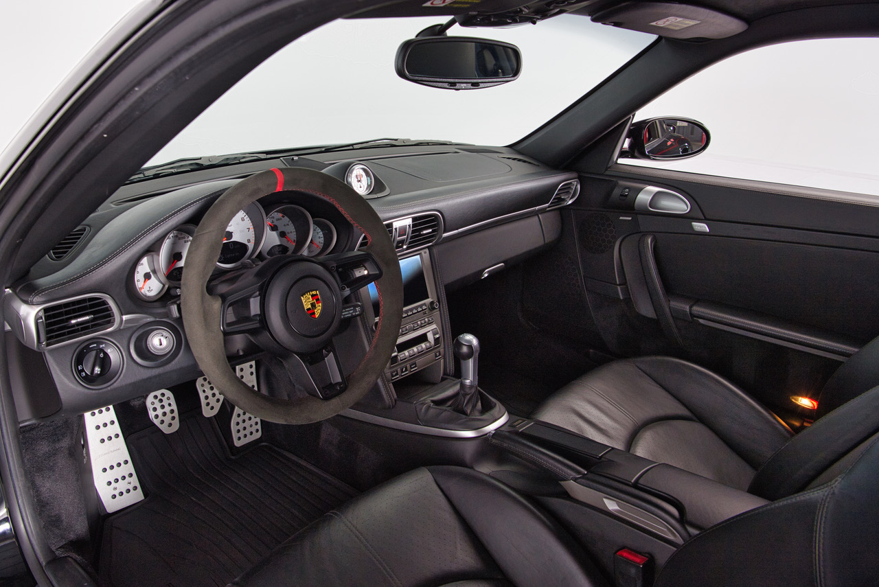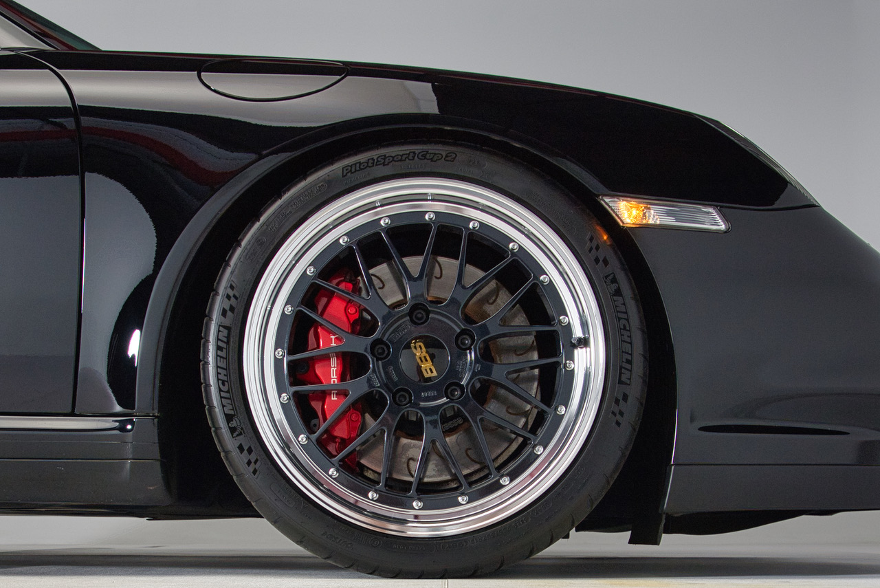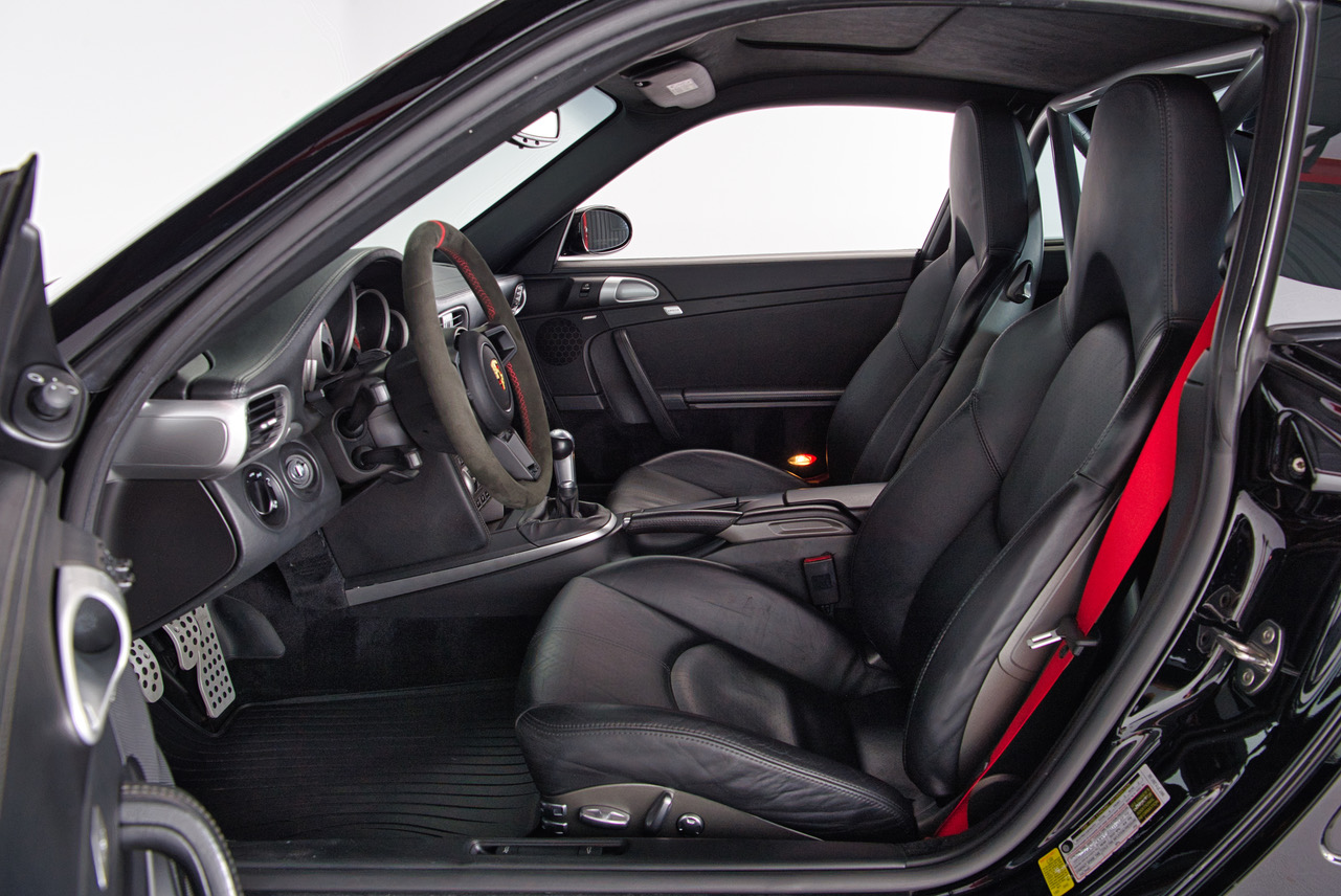 CLB Sportscars is thrilled to offer this 2007 Porsche 911 Turbo finished in Black over Black Interior. This gorgeous 6-speed 997.1 Turbo arrives with just 25,767 miles from new and features an array of tasteful upgrades that enhance the experience that only a 911 Turbo can deliver. A GMG 3.5 inch Exhaust with slash cut tips enhances the 3.6L Mezger’s soundtrack and is paired with a ByDesign Stage 2 Tune. The car sits on Bilstein Coilovers front and rear and wears a set of fresh Michelin Pilot 4S tires. Inside, a 991.2 GT3 Steering Wheel and PCCM Head Unit help modernize the full black leather interior, and a GMG roll cage sits in back. This is a perfectly dialed 997.1 Turbo and benefits from long term collectibility with its factory 6-speed transmission.