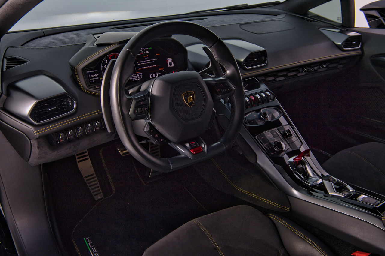 CLB Sportscars is thrilled to offer this 2015 Lamborghini Huracan LP610-4finished in Nero Noctis over Nero Ade Interior. Delivered new to Los Gatos Luxury Cars at an MSRP of $289K, this example boasts a massive options list that includes Carbon Ceramic Brakes with Yellow Calipers, Front Lift System, Transparent Engine Bonnet, Heated and Electric Seats and more. Arriving with 30,221 miles, this example boasts a clean Carfax report and is ready for its next owner!