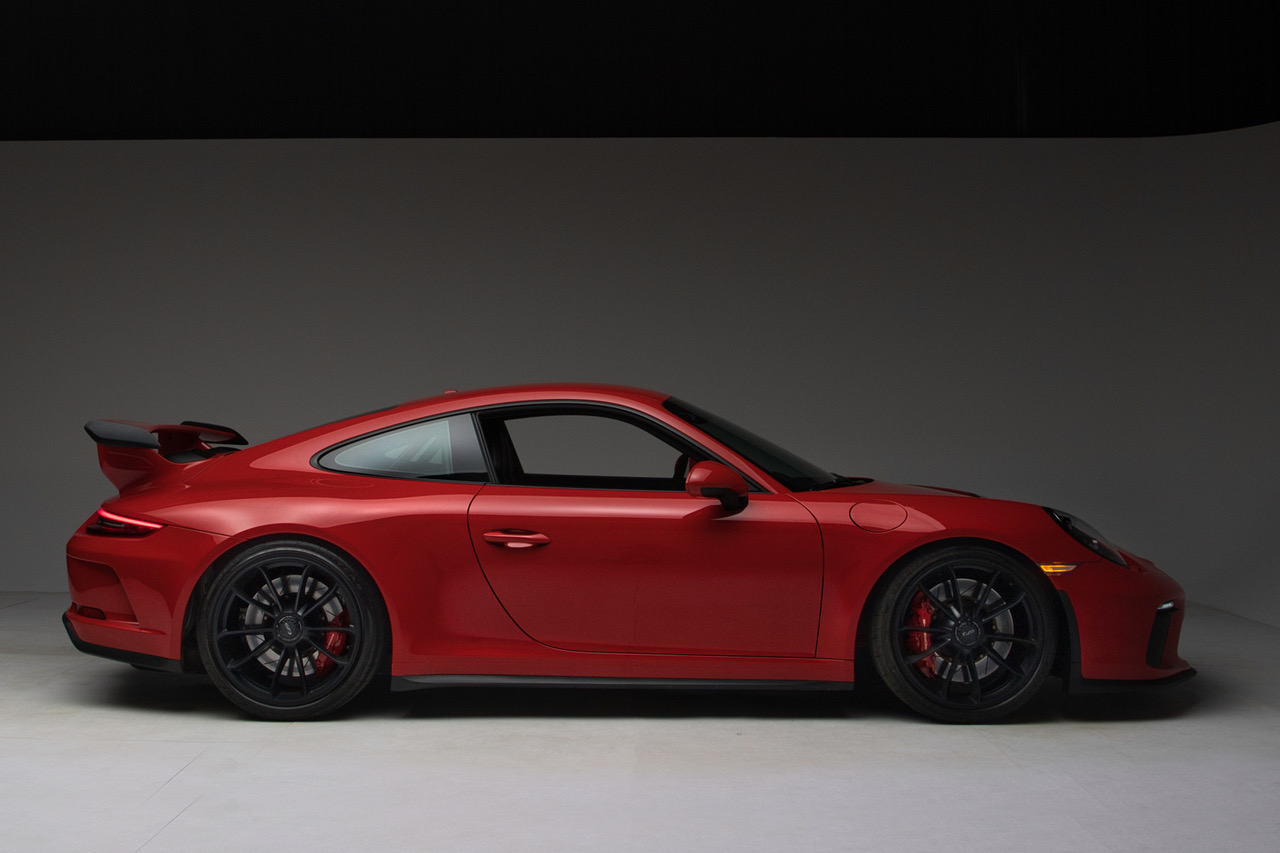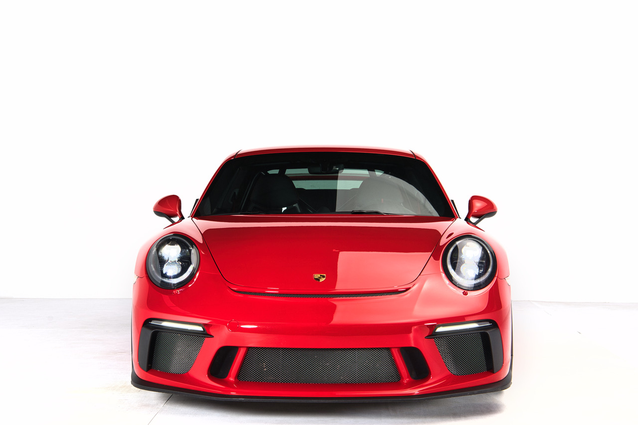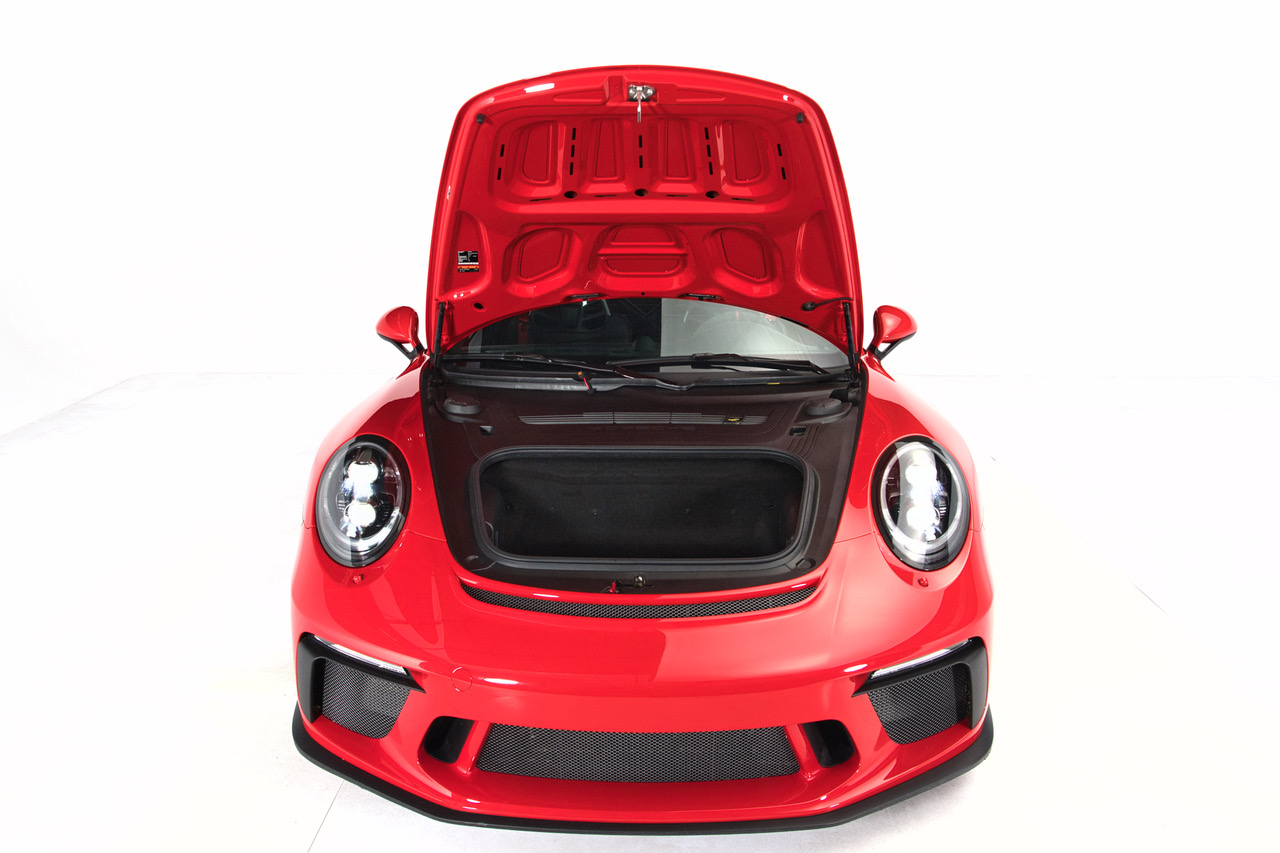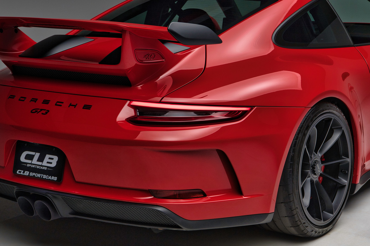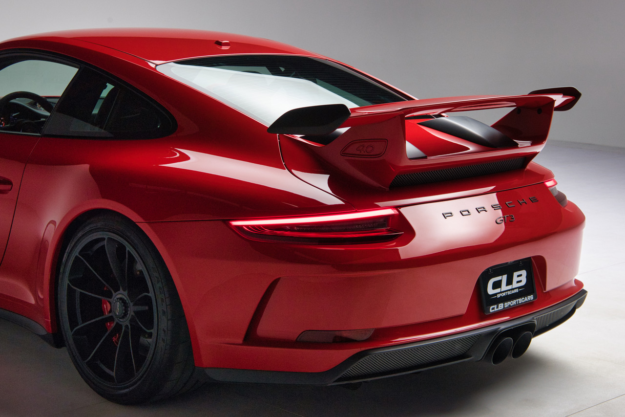 CLB Sportscars is pleased to offer this 2018 Porsche 911 GT3 finished in Guards Red over Black Interior. Delivered new to Porsche Dallas, this GT3 is well-appointed with Carbon Bucket Seats, Bose Surround Sound, Extended Range Fuel Tank, and more. The soundtrack of the 4.0-liter Flat Six engine is tastefully enhanced with a GMG Racing Center Muffler Bypass, adding further enjoyment to an already dynamic platform. Arriving with just 9,873 miles and protected by PPF on the Front Bumper, Front Fenders, and Hood, this GT3 is ready for its next owner to enjoy!
