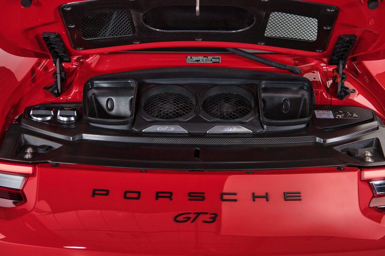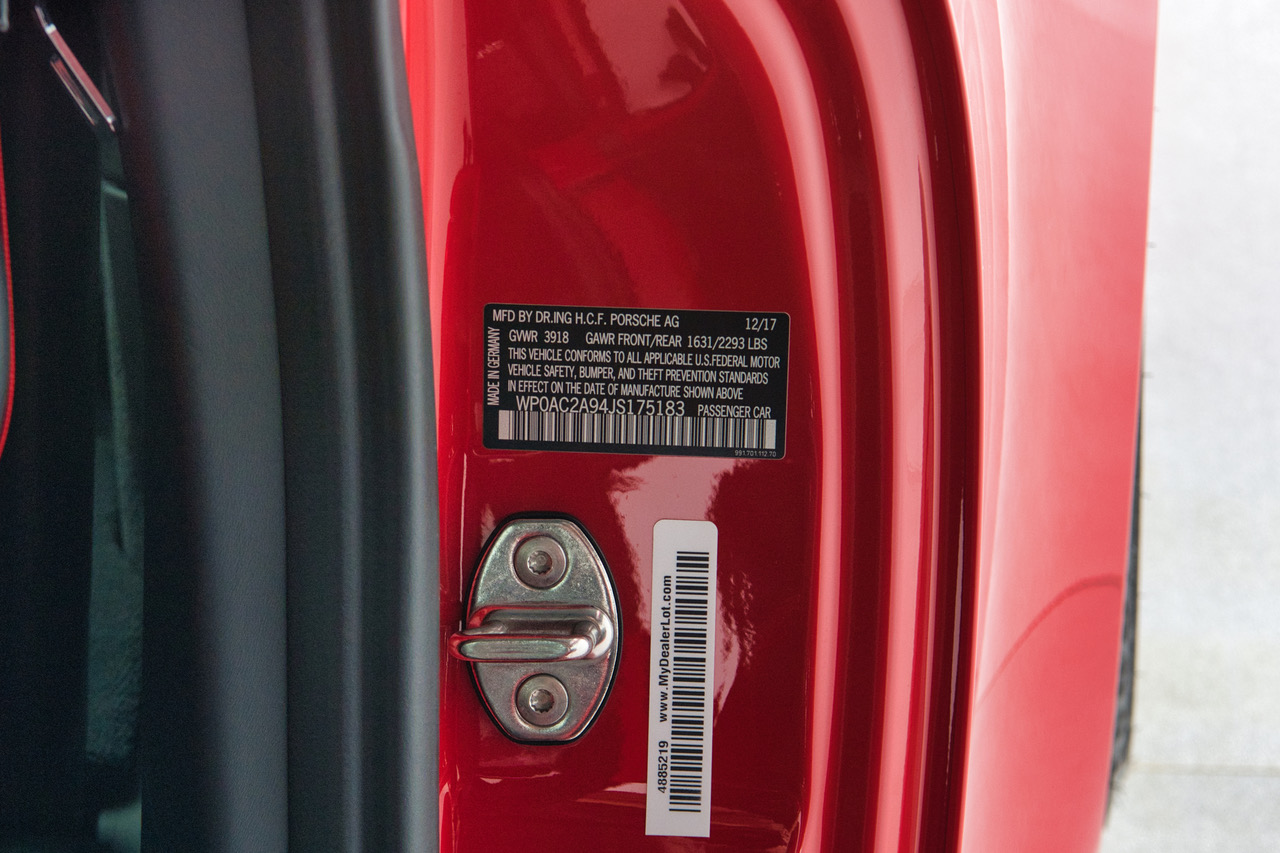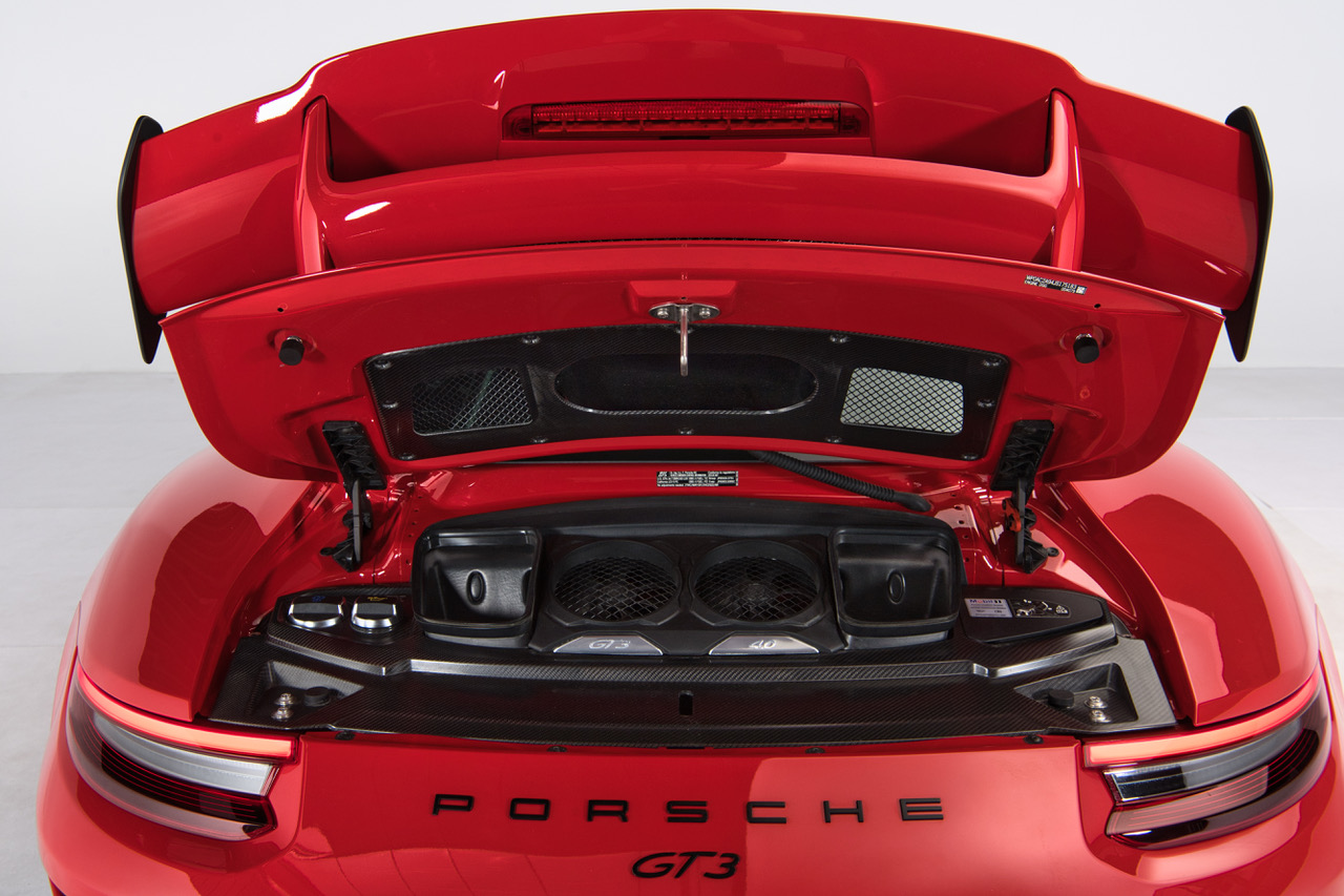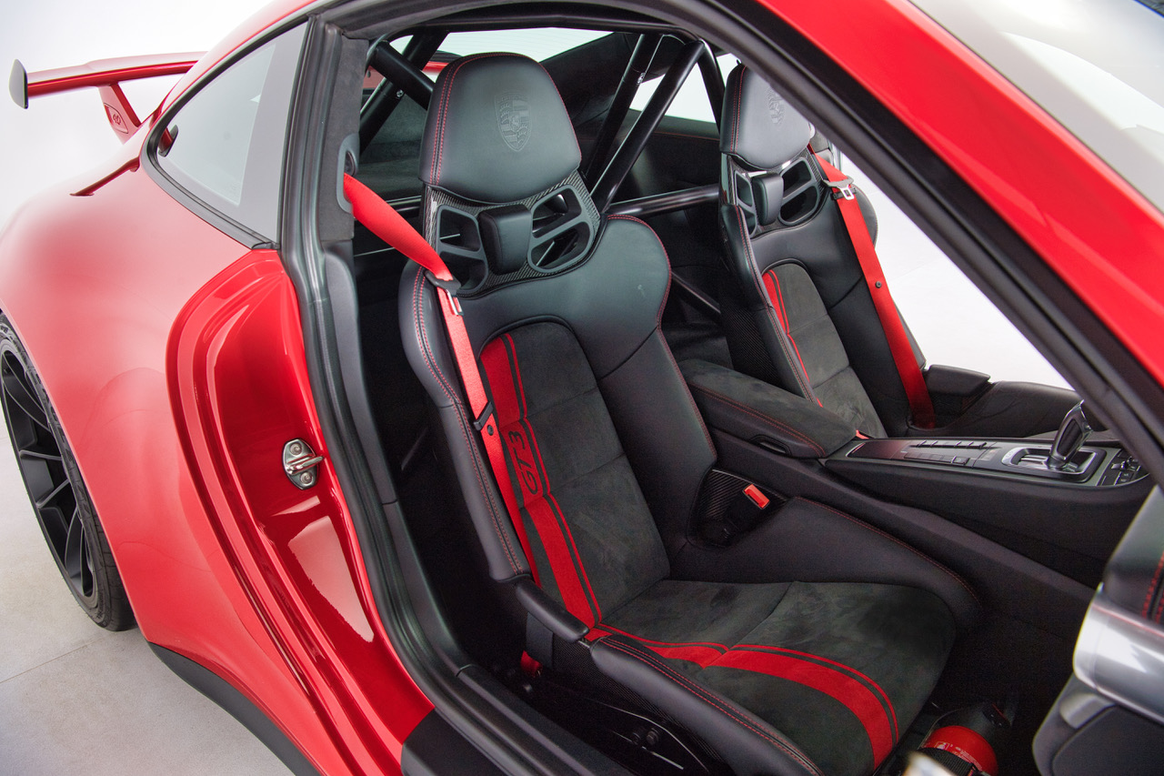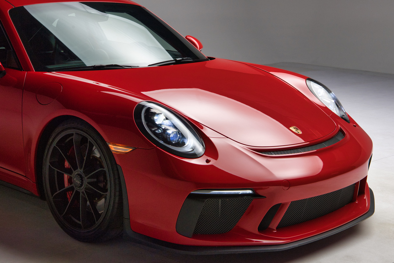 CLB Sportscars is pleased to offer this 2018 Porsche 911 GT3 finished in Guards Red over Black Interior. Delivered new to Porsche Dallas, this GT3 is well-appointed with Carbon Bucket Seats, Bose Surround Sound, Extended Range Fuel Tank, and more. The soundtrack of the 4.0-liter Flat Six engine is tastefully enhanced with a GMG Racing Center Muffler Bypass, adding further enjoyment to an already dynamic platform. Arriving with just 9,873 miles and protected by PPF on the Front Bumper, Front Fenders, and Hood, this GT3 is ready for its next owner to enjoy!