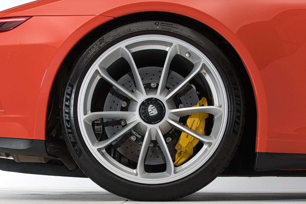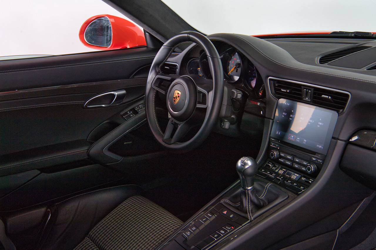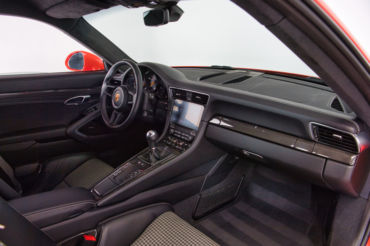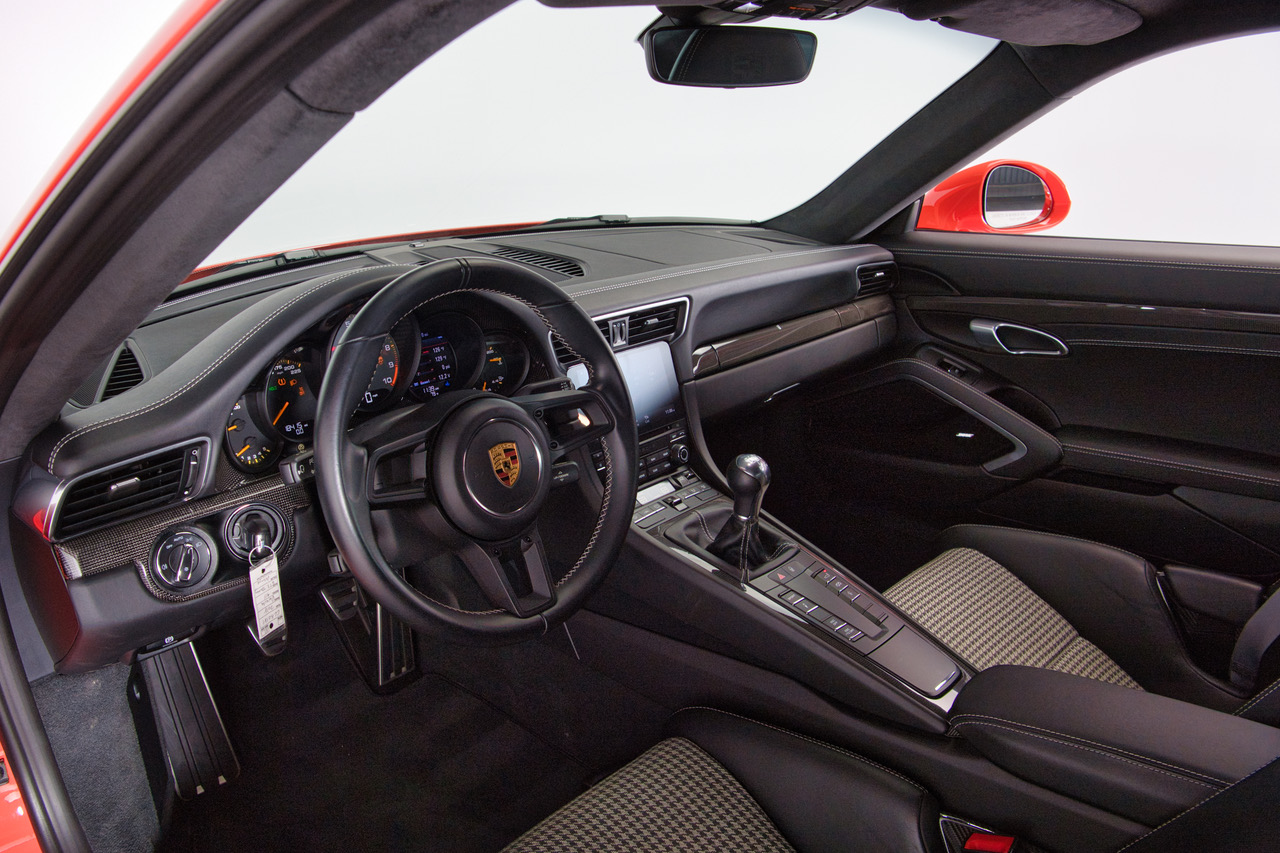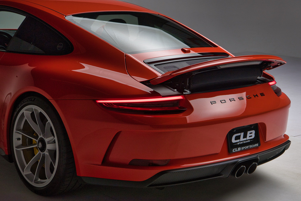 CLB Sportscars is proud to offer this 2018 Porsche 911 GT3 Touring finished in Lava Orange over Black Interior! Arriving with 18,412 miles, this example represents the pinnacle of 991.2 Tourings with its vast options list, including Porsche Ceramic Composite Brakes, Carbon Bucket Seats, Front Axle Lift, and much more. In contrast with many stripped-down Touring examples, the cabin is well adorned with deviated GT Silver stitching, Carbon Fiber Door Sills and Interior Trim, Silver Grey Seat Belts and more. Additions include Houndstooth Seat Inserts, a Shark Werks center muffler, a Numeric Racing Shifter Kit, and Full PPF on the entire vehicle. With only 3 Lava Orange 991.2 Tourings reported to have left Zuffenhausen, this is a rare opportunity in today’s market!
