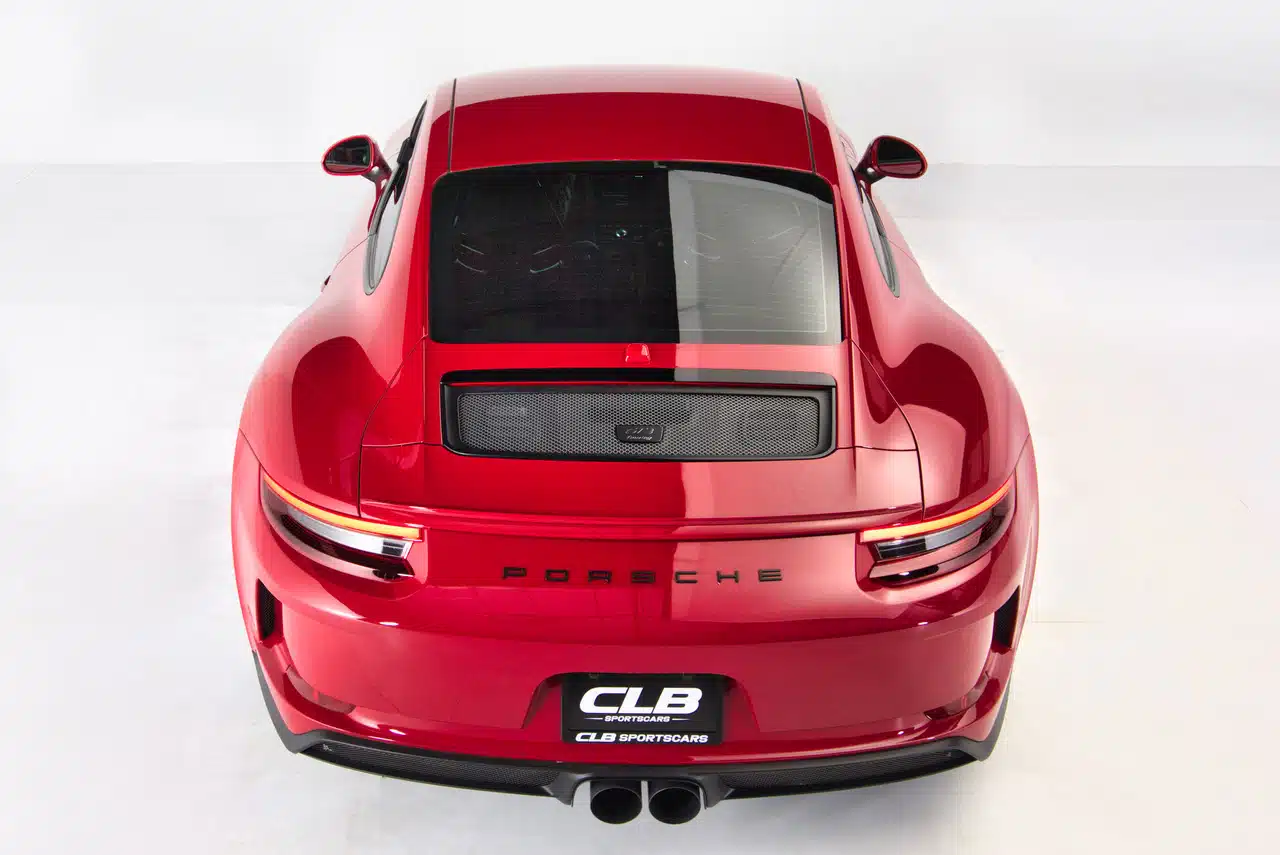 CLB Sportscars is thrilled to offer this 2018 Porsche 911 GT3 Touring finished in Carmine Red over Black Interior. Arriving with a spotless DME report, the car is powered by a 4.0L Flat Six engine paired with a 6-speed manual transmission. This Touring features several unique options not typically seen on Touring models, including Leather Dash and Steering Column, Carbon Buckets Seats, Painted Air Vents, and more. The car also features a few enhancements in the form of full body PPF, OEM wheels refinished in Silver, Paint-matched side skirts, and a Shark Werks center muffler. Sold as Porsche CPO on 9/20/2024.