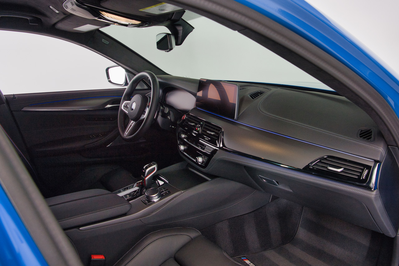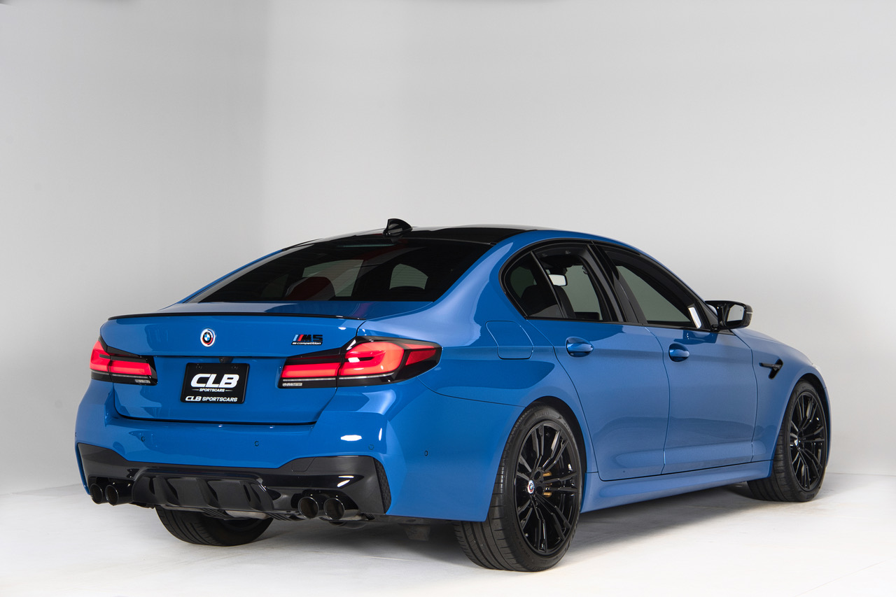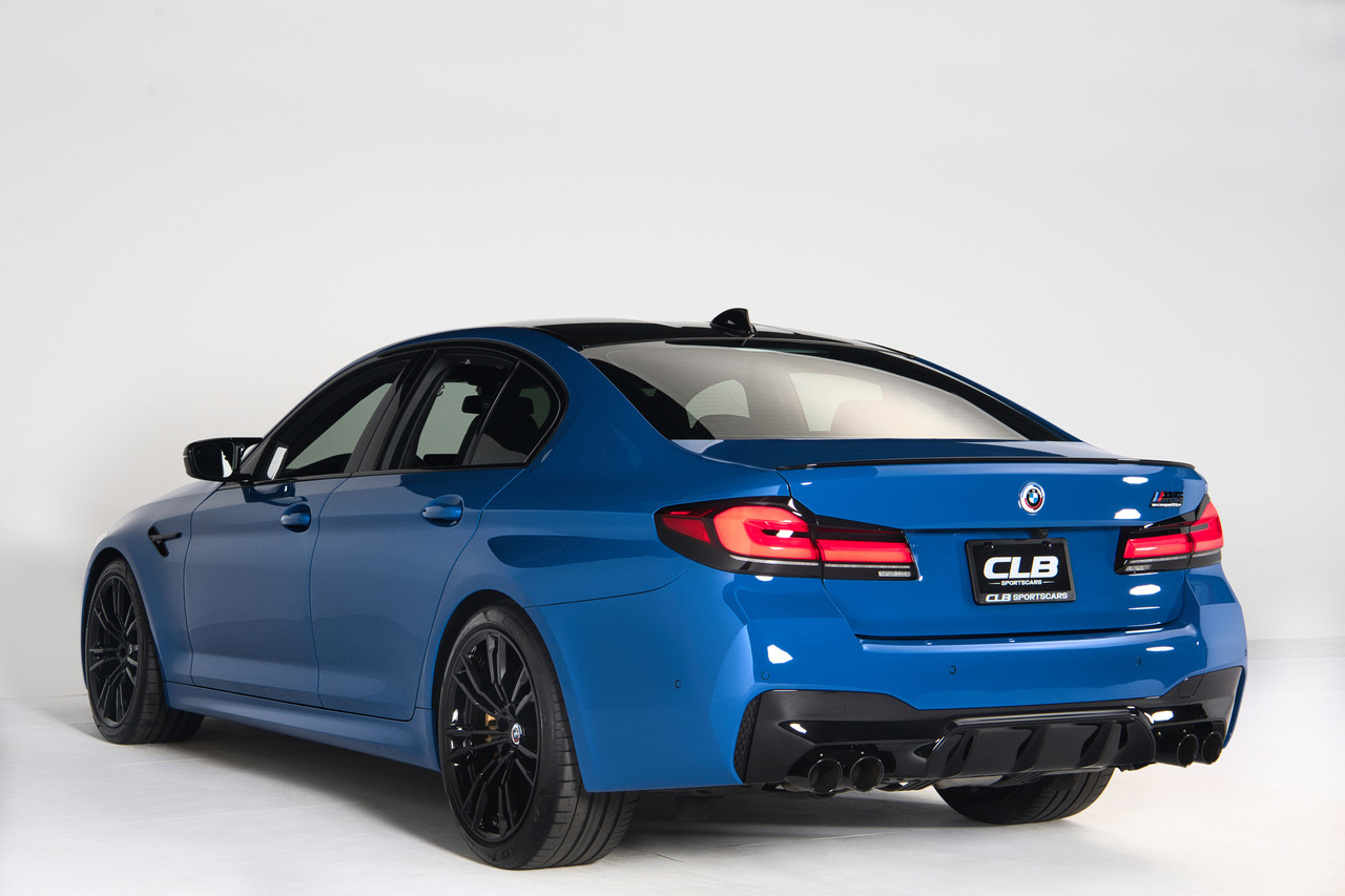 CLB Sportscars is thrilled to offer this 2023 BMW M5 Competition finished in Individual Santorini Blue over Back Full Merino Leather. Ending in 2023 the F90 Generation M5 is lauded for its stout performance and svelt proportions over its larger, hybrid-powered predecessor. This example comes fully loaded from the Bavaria, Germany production facility with the Competition Package, Executive Package, Bowers & Wilkins Sound System, and Carbon Ceramic Brakes. Arriving with just 8,936 miles and covered head to toe in PPF, this is the F90 M5 to have!