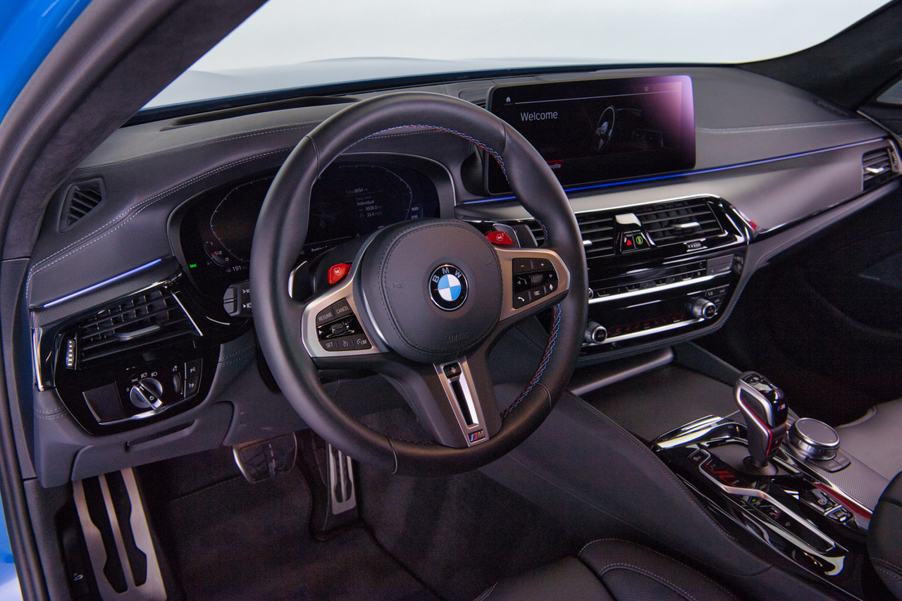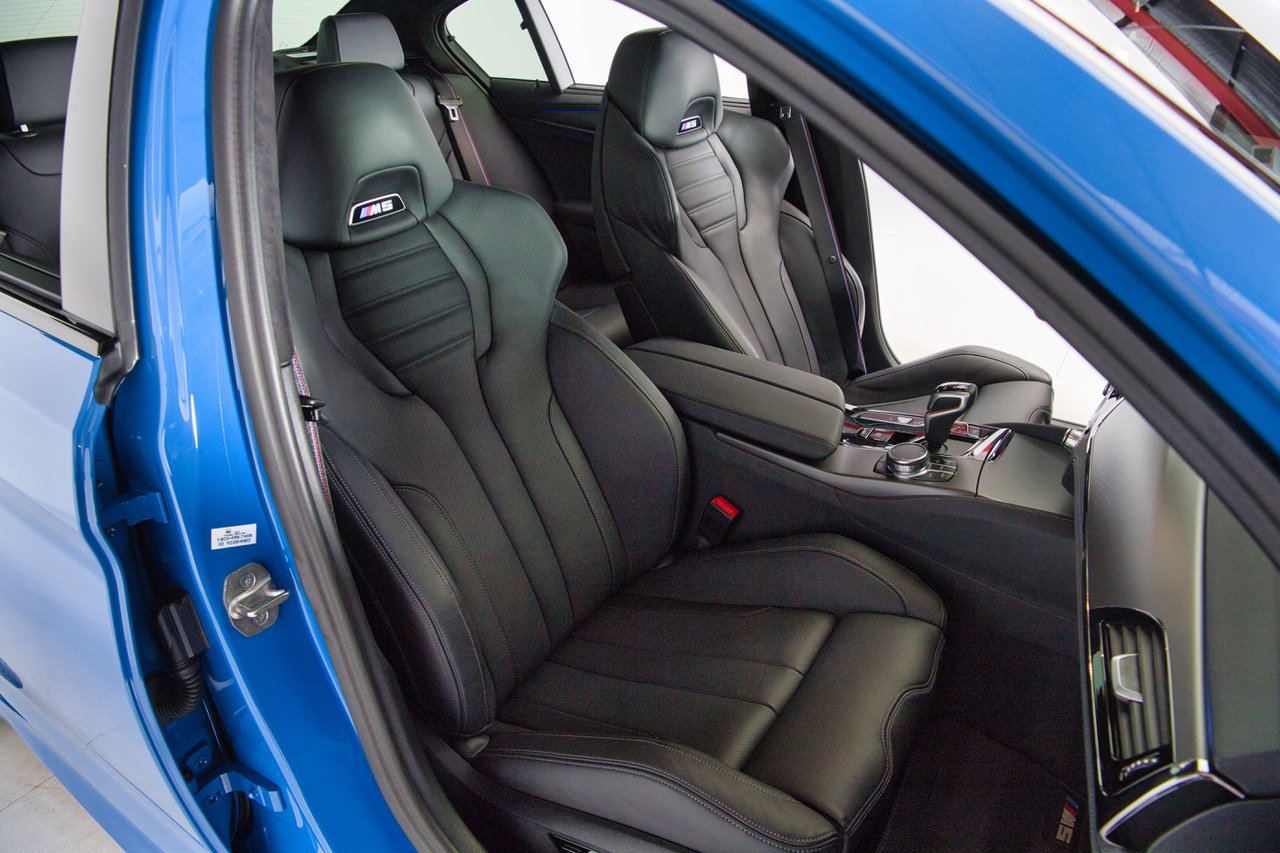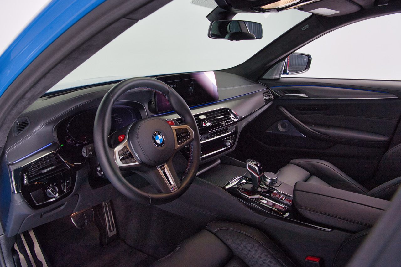 CLB Sportscars is thrilled to offer this 2023 BMW M5 Competition finished in Individual Santorini Blue over Back Full Merino Leather. Ending in 2023 the F90 Generation M5 is lauded for its stout performance and svelt proportions over its larger, hybrid-powered predecessor. This example comes fully loaded from the Bavaria, Germany production facility with the Competition Package, Executive Package, Bowers & Wilkins Sound System, and Carbon Ceramic Brakes. Arriving with just 8,936 miles and covered head to toe in PPF, this is the F90 M5 to have!